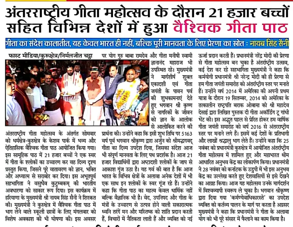 अंतरराष्ट्रीय गीता महोत्सव के दौरान 21 हजार बच्चों सहित विभिन्न देशों में हुआ वैश्विक गीता पाठBy administrator / December 9, 2025