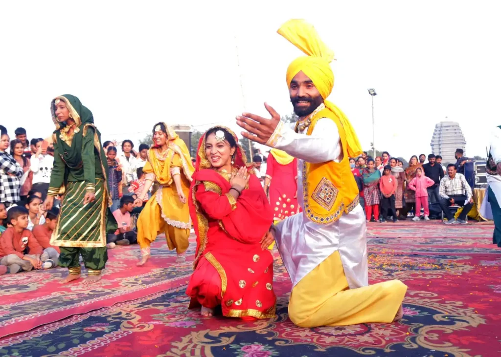 अंतर्राष्ट्रीय गीता महोत्सव की पावन भूमि पर लोक संस्कृति की ये रंगीन झलक—जहाँ भंगड़ा की ताल, मुस्कुराहटों की चमक और भक्तिभाव का संगम सबको एक साथ जोड़ देता है।