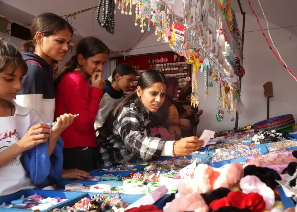 महोत्सव की रौनक में शामिल बच्चों की पसंद—खूबसूरत ज्वेलरी और सजावटी सामान की दिलचस्प खरीदारी।