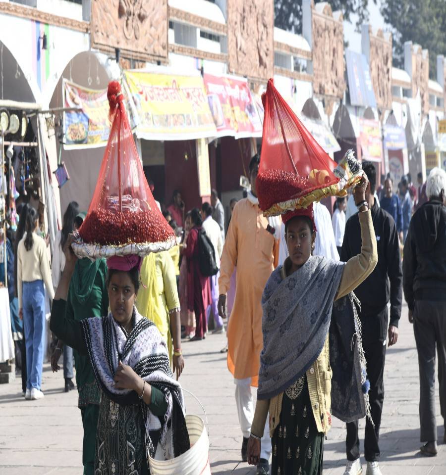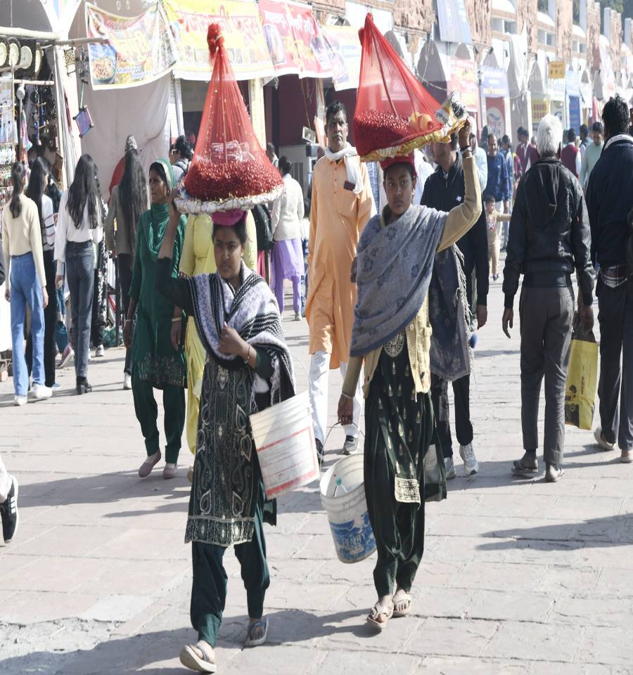 अंतर्राष्ट्रीय गीता महोत्सव के रंगीन बाज़ार में रौनक अपने चरम पर थी। सुरक्षा व्यवस्था में जुटी महिला पुलिसकर्मियों की जिम्मेदारी, और वस्तुएँ सिर पर उठाकर चलती महिलाएँ—हर दृश्य महोत्सव की सादगी, सेवा और सांस्कृतिक सौंदर्य की अनोखी कहानी कह रहा था। यह जीवंत माहौल दर्शकों और श्रद्धालुओं को भारतीय संस्कृति और उत्सव की असली अनुभूति कराता है।