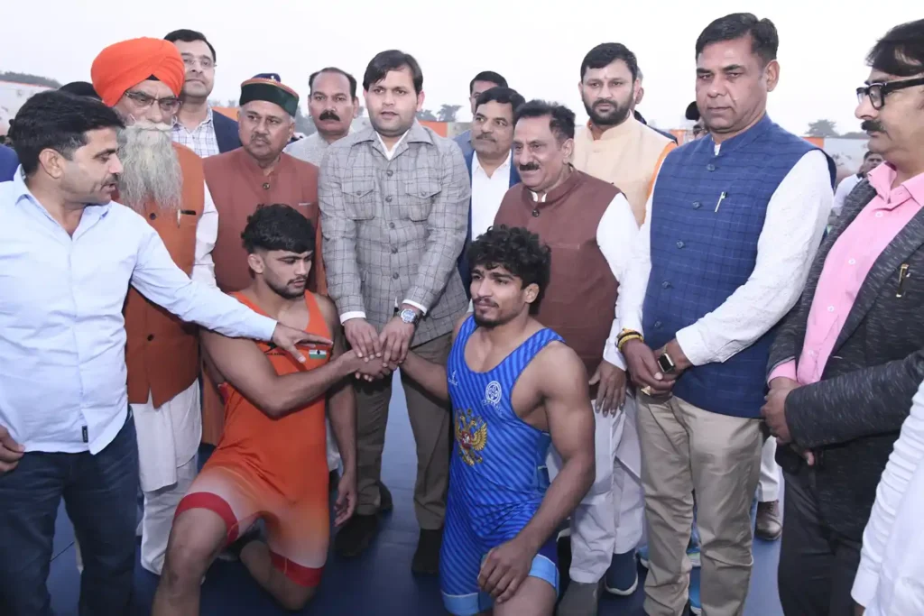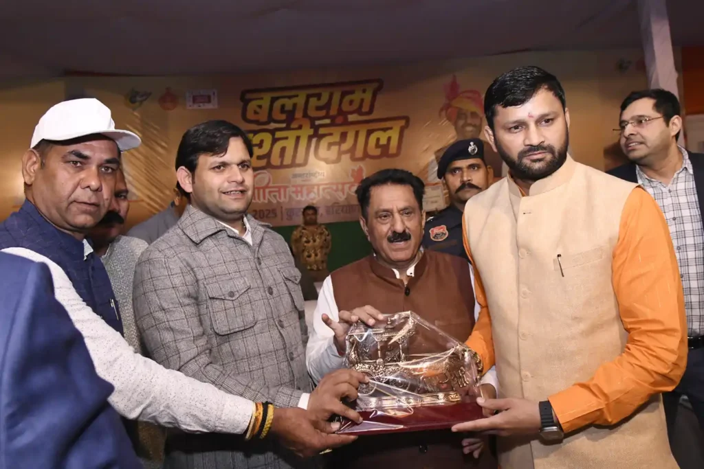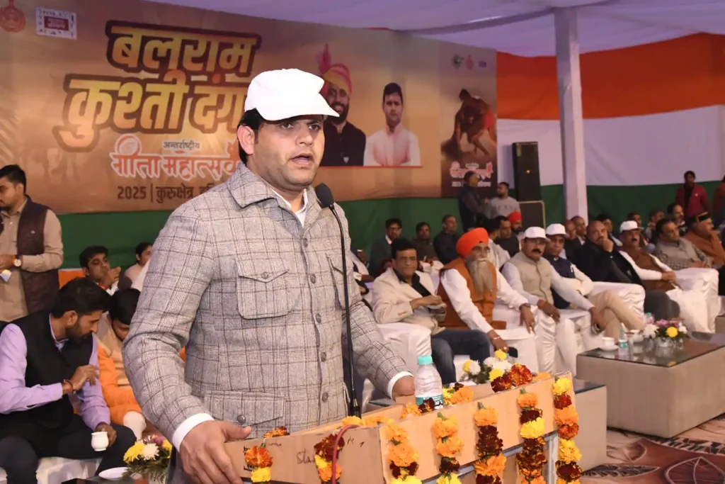 आज कुरुक्षेत्र के थीम पार्क में आयोजित बलराम कुश्ती दंगल ने परंपरा, शक्ति और रोमांच का अद्वितीय संगम प्रस्तुत किया। अखाड़े में मल्लों के दमदार दांव-पेच, गूंजती दहाड़ और दर्शकों की उत्साहभरी जयकारों ने पूरे वातावरण को जीवंत कर दिया। इस आयोजन के मुख्य अतिथि रहे श्री गौरव गौतम, राज्य मंत्री (युवा अधिकारिता एवं उद्यमिता, खेल, कानून एवं विधायी, हरियाणा सरकार), जिनकी गरिमामयी उपस्थिति ने कार्यक्रम में ऊर्जा और प्रेरणा का संचार किया। 2 दिसंबर 2025 की इस विशेष संध्या ने एक बार फिर सिद्ध किया कि कुश्ती केवल एक खेल नहीं, बल्कि हमारी सांस्कृतिक धरोहर और गौरव का अभिन्न प्रतीक है। शक्ति, कौशल और खेल भावना से भरा यह भव्य आयोजन सभी के लिए अविस्मरणीय रहा। अंतर्राष्ट्रीय गीता महोत्सव में आयोजित इस दंगल को सफल बनाने के लिए सभी खिलाड़ियों, दर्शकों और आयोजन सहयोगियों का हार्दिक धन्यवाद।