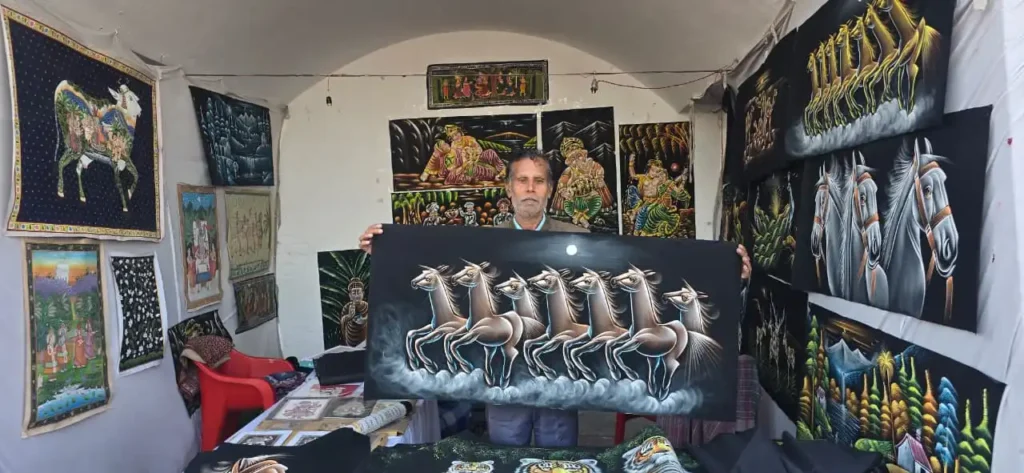 कुरुक्षेत्र, 4 दिसंबर। अंतर्राष्ट्रीय गीता महोत्सव-2025 में कला और संस्कृति का अद्भुत संगम देखने को मिल रहा है। स्टॉल संख्या 324 पर लगी हैंड मेड पेंटिंग और मिनिएचर आर्ट की प्रदर्शनी ने पर्यटकों का ध्यान अपनी ओर खींच लिया है। प्रसिद्ध शिल्पकार दिलीप कोठारी द्वारा हाथों से तैयार की गई ये कलाकृतियाँ न केवल कलात्मक रूप से मनमोहक हैं, बल्कि इनमें भारतीय संस्कृति और भगवद गीता के शाश्वत संदेश की झलक भी देखने को मिलती है। विशेष रूप से भगवद गीता पर आधारित पेंटिंग्स और सूक्ष्म मिनिएचर आर्ट लोगों की पहली पसंद बनी हुई हैं। कई कला प्रेमी इन्हें स्मृति रूप में संजोने या उपहार स्वरूप लेने में उत्साहित हैं। स्टॉल पर 200 रुपये से लेकर 50,000 रुपये तक की कलाकृतियाँ उपलब्ध हैं। दिलीप कोठारी का यह हुनर महोत्सव को एक नया कलात्मक आयाम प्रदान कर रहा है और उनकी रचनाएँ हमारी समृद्ध सांस्कृतिक विरासत को जीवंत बनाती हैं।