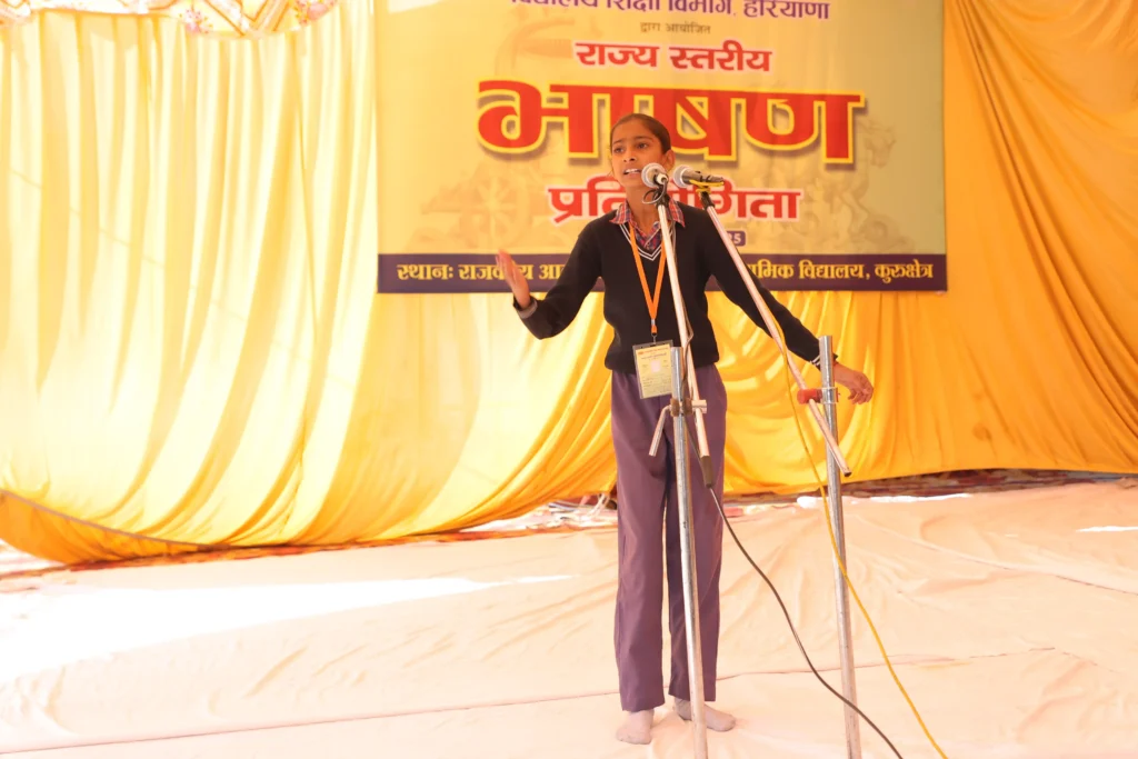 अन्तर्राष्ट्रीय गीता महोत्सव–2025 के अन्तर्गत विद्यालय शिक्षा विभाग, हरियाणा द्वारा आयोजित राज्य स्तरीय प्रतियोगिताओं में विद्यार्थियों की वक्तृत्व कला और विचारशीलता को बढ़ावा देने हेतु भाषण प्रतियोगिता का आयोजन किया गया। इस प्रतियोगिता में छात्रों ने गीता के शाश्वत संदेशों, नैतिक मूल्यों और जीवन के आदर्शों को अपने शब्दों और भावनाओं के माध्यम से प्रस्तुत किया। यह कार्यक्रम 27 से 30 नवम्बर, 2025 तक राजकीय आदर्श संपति संरिन्द माध्यमिक विद्यालय, कुरुक्षेत्र में आयोजित हुआ।
