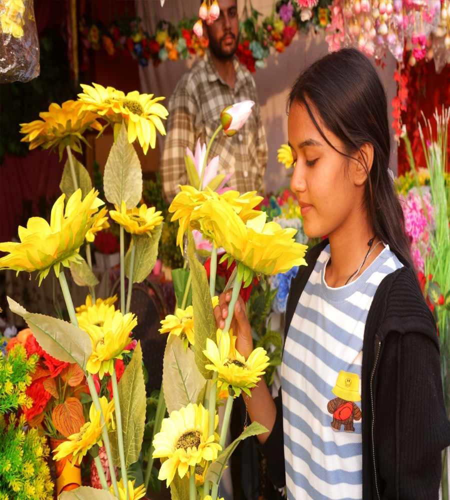 गीता महोत्सव 2025 का क्राफ्ट फेयर रंगों, कला और उत्साह का अद्भुत संगम प्रस्तुत करता है। इस मेले में आर्टिफिशियल फ्लावर, हैंडमेड डेकोरेशन, क्राफ्ट आइटम और आकर्षक शोपीस हर आगंतुक का ध्यान खींचते हैं। युवा लड़की की फूलों को नज़दीक से महसूस करती मुस्कान, बाज़ार का हलचल भरा माहौल, और रंग-बिरंगी कलाकृतियाँ—सब मिलकर इस मेले को और भी जीवंत बना रहे हैं। प्रत्येक स्टॉल अपनी मेहनत, क्रिएटिविटी और कला की कहानी बयान करता है, और लोग उत्सुकता से हर चीज़ को देखते, छूते और चुनते नज़र आते हैं। गीता महोत्सव 2025 का यह क्राफ्ट फेयर न केवल भारतीय संस्कृति और कला का उत्सव है, बल्कि आगंतुकों के लिए एक यादगार और रंगीन अनुभव भी पेश करता है।