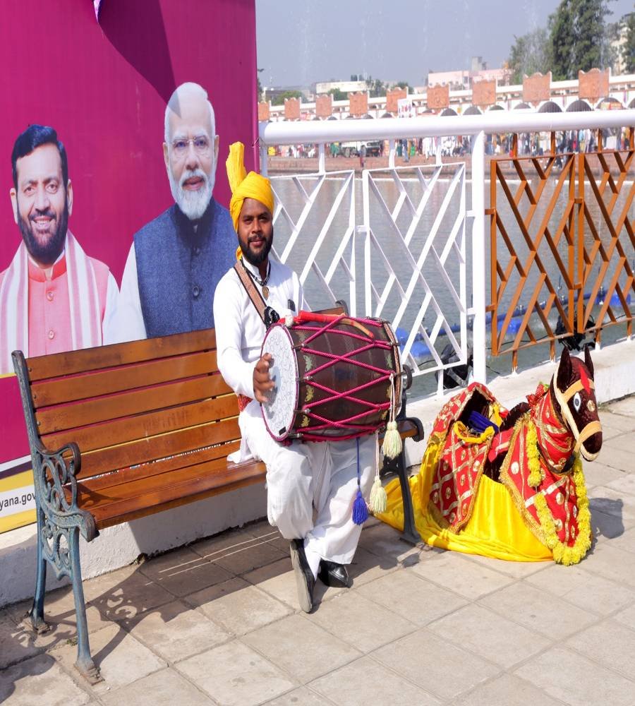 परंपरा की ताल और संस्कृति का कमाल! अंतर्राष्ट्रीय गीता महोत्सव में लोक कलाकारों ने ढोल की थाप पर हरियाणवी लोकधुन छेड़ी, जबकि पारंपरिक घोड़ा नृत्य की रंग-बिरंगी झलक ने पर्यटकों का मन मोह लिया। ब्रह्मसरोवर पर संगीत, संस्कृति और अध्यात्म का यह अनोखा संगम महोत्सव को और भी भव्य और यादगार बना रहा है।