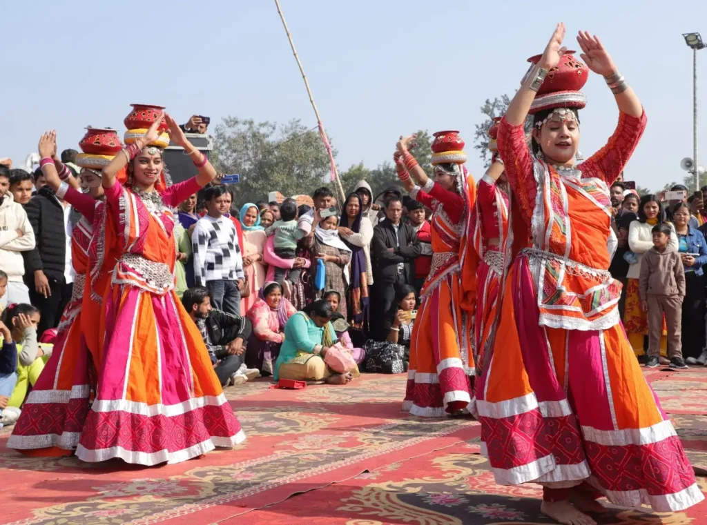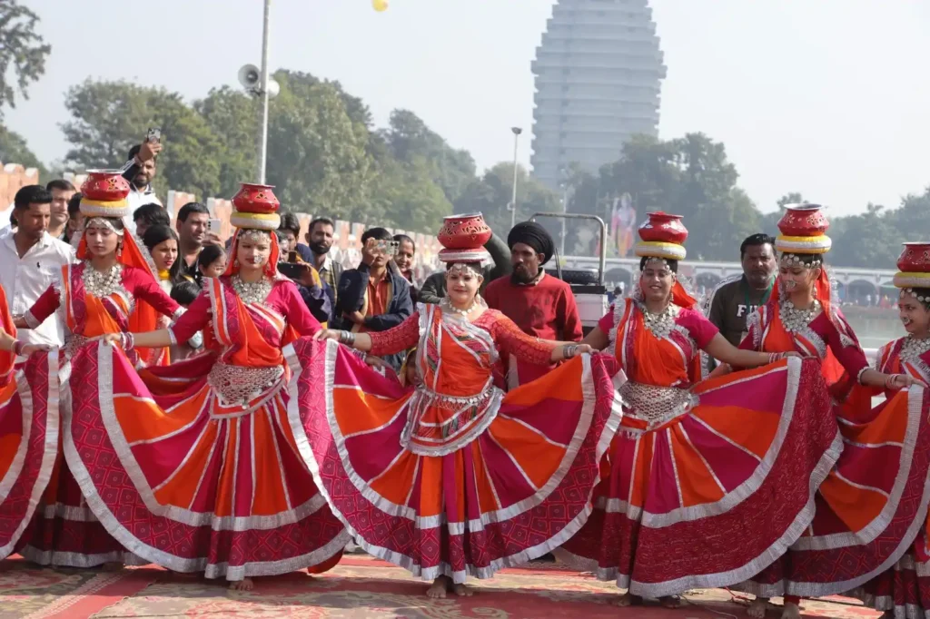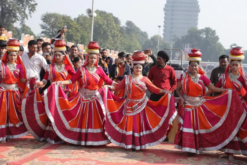 अंतर्राष्ट्रीय गीता महोत्सव–2025 की पावन भूमि पर आज भारतीय लोक-संस्कृति का अद्भुत और मनोहारी वैभव देखने को मिला। पारंपरिक राजस्थानी परिधान, सिर पर सुशोभित कलश, और लयबद्ध ताल के साथ प्रस्तुत इन लोकनर्तकियों के मोहक नृत्य ने पूरे महोत्सव को एक शाही, भव्य और अविस्मरणीय सांस्कृतिक आभा प्रदान की। उनकी हर मुद्रा, हर कदम और घूमते हुए पल्लव का हर लम्हा—भारत की प्राचीन लोक-परंपराओं की दिव्यता, सुंदरता और गौरव को राजसी अंदाज़ में जीवंत कर रहा था। यह नृत्य केवल एक प्रस्तुति नहीं, बल्कि भारतीय संस्कृति, परंपरा और आत्मिक गरिमा का एक भव्य उत्सव था, जिसने दर्शकों के मन में संस्कृति के प्रति नया सम्मान और गर्व भर दिया।