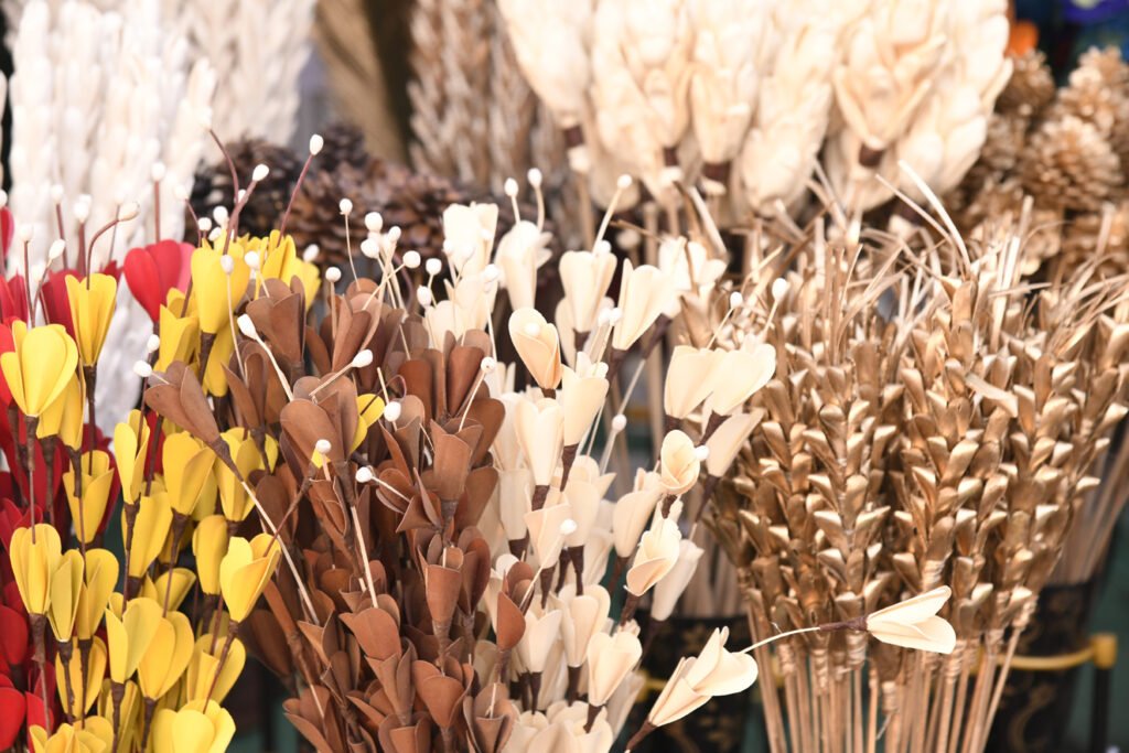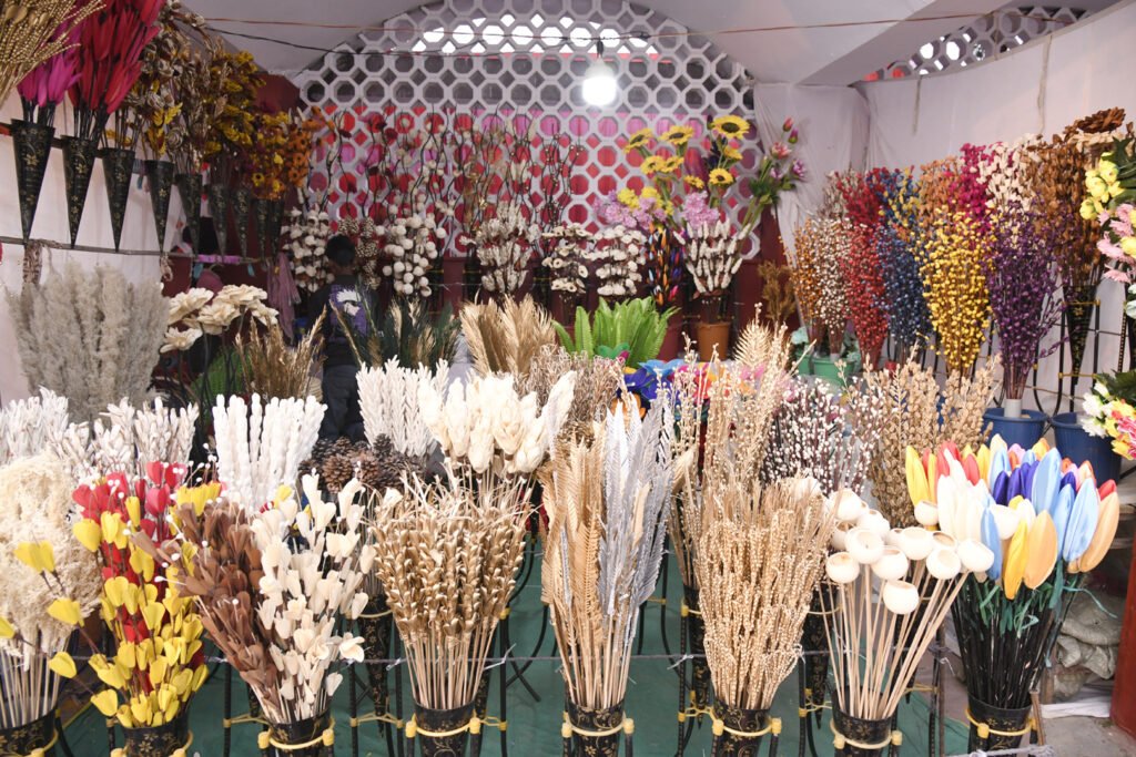 फूलों और हस्तशिल्प की मनमोहक सजावट से सजा यह आकर्षक स्टॉल