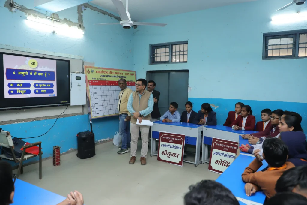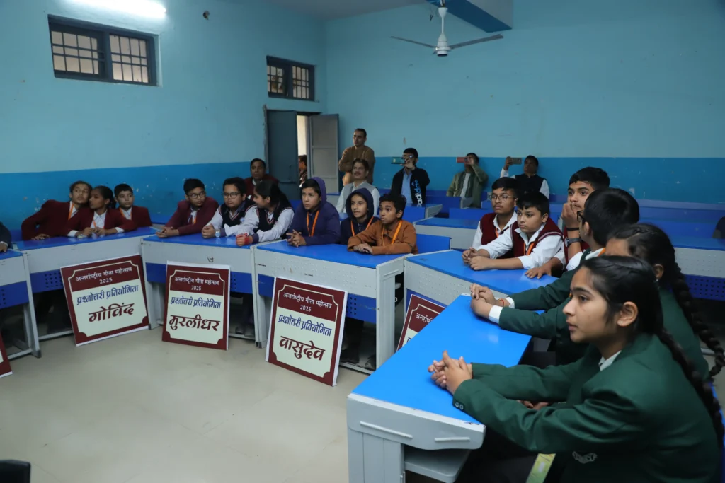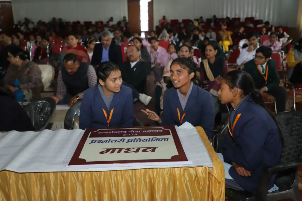 अन्तर्राष्ट्रीय गीता महोत्सव–2025 के अंतर्गत विद्यालय शिक्षा विभाग, हरियाणा द्वारा राज्य स्तरीय प्रश्नोत्तरी प्रतियोगिता का आयोजन 30 नवम्बर 2025 को किया गया। इस प्रतियोगिता में विभिन्न विद्यालयों की टीमों ने भाग लेकर श्रीमद्भगवद्गीता से संबंधित अपने ज्ञान, तर्कशक्ति एवं बौद्धिक क्षमता का प्रभावशाली प्रदर्शन किया। प्रतियोगिता का उद्देश्य विद्यार्थियों में गीता के शाश्वत संदेशों के प्रति रुचि जागृत करना तथा तार्किक सोच और टीम भावना को प्रोत्साहित करना रहा। आयोजन स्थल राजकीय आदर्श संपति संरिन्द माध्यमिक विद्यालय, कुरुक्षेत्र में पूरे उत्साह और अनुशासन के साथ प्रतियोगिता संपन्न हुई।