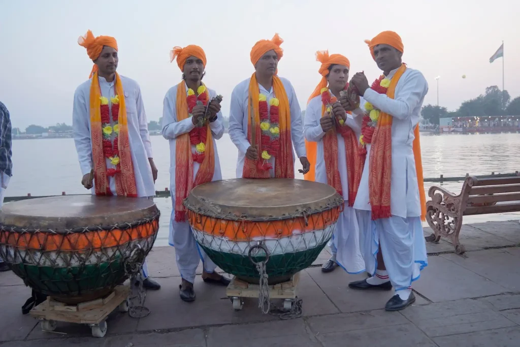 अंतर्राष्ट्रीय गीता महोत्सव 2025 में ब्रह्मसरोवर के तट पर परंपरागत वाद्यों की गूंज ने पूरे वातावरण में उत्सव, भक्ति और आस्था का जोश भर दिया। गुलाबी पहनावे में सजे लोक कलाकारों ने ढोल, शहनाई और झांझ की मधुर धुनों से संस्कृति, संगीत और आध्यात्मिकता का अद्भुत संगम प्रस्तुत किया। यह अनुभव न केवल सांस्कृतिक विरासत का प्रतीक है, बल्कि महोत्सव के आध्यात्मिक वातावरण को जीवंत और यादगार बनाता है।