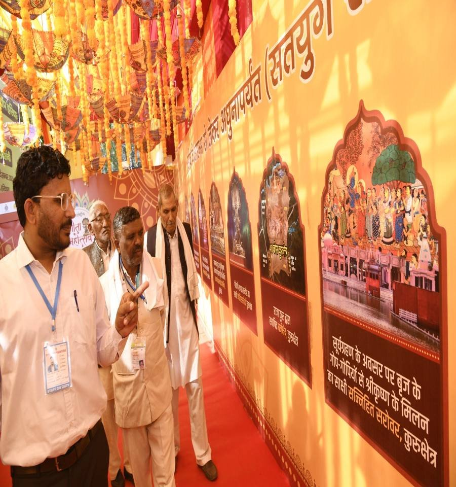 कुरुक्षेत्र के ब्रह्मसरोवर पर आयोजित अंतर्राष्ट्रीय गीता महोत्सव 2025 में सूचना, जनसंपर्क एवं भाषा विभाग की राज्य स्तरीय प्रदर्शनी ने इस वर्ष अपनी विशिष्ट पहचान बनाई। महोत्सव में आए देश-प्रदेश के शिल्पकार अपनी हस्तशिल्प कला से दर्शकों को मंत्रमुग्ध कर रहे हैं, वहीं यह प्रदर्शनी हरियाणा सरकार की लोक-कल्याणकारी योजनाओं और उपलब्धियों का उत्कृष्ट प्रदर्शन कर रही है। जिला सूचना एवं जनसंपर्क अधिकारी डॉ. नरेन्द्र सिंह ने बताया कि प्रदर्शनी में हरियाणा सरकार के विभिन्न विभागों द्वारा अपनी नीतियों, योजनाओं और उपलब्धियों को आकर्षक रूप में प्रस्तुत किया गया है। प्रतिदिन हजारों पर्यटक स्टॉल का अवलोकन कर सरकार द्वारा संचालित विकास कार्यों की जानकारी प्राप्त कर रहे हैं। प्रदर्शनी में अभिलेखागार विभाग, हरियाणा राज्य ग्रामीण आजीविका मिशन, पुरातत्व एवं संग्रहालय विभाग, कृषि एवं किसान कल्याण विभाग, पशुपालन एवं डेयरी विभाग, उद्योग एवं वाणिज्य विभाग, महिला एवं बाल विकास विभाग, विद्युत प्रसारण निगम सहित अनेक विभागों ने जनकल्याणकारी योजनाओं और लघु फिल्मों के माध्यम से पर्यटकों का ध्यान आकर्षित किया। डीआईपीआरओ ने बताया कि प्रदर्शनी के सफल संचालन में स्टाफ का निरंतर सहयोग महत्वपूर्ण रहा, जो दिन-रात अपनी ड्यूटी में तत्पर हैं। इस प्रदर्शनी ने महोत्सव में एक ज्ञानवर्धक और शिक्षाप्रद अनुभव के रूप में पर्यटकों के लिए विशेष आकर्षण पैदा किया।