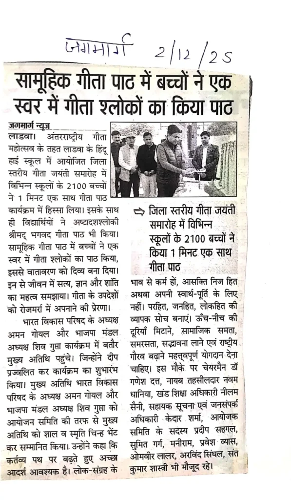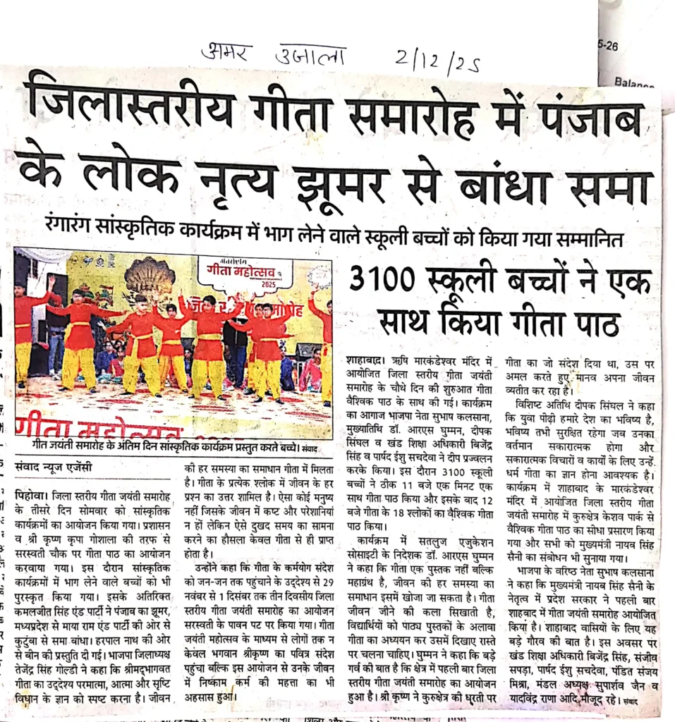 Print Media IGM 2025सामूहिक गीता पाठ में बच्चों ने एक स्वर में गीता श्लोकों का किया पाठ administrator / December 8, 2025