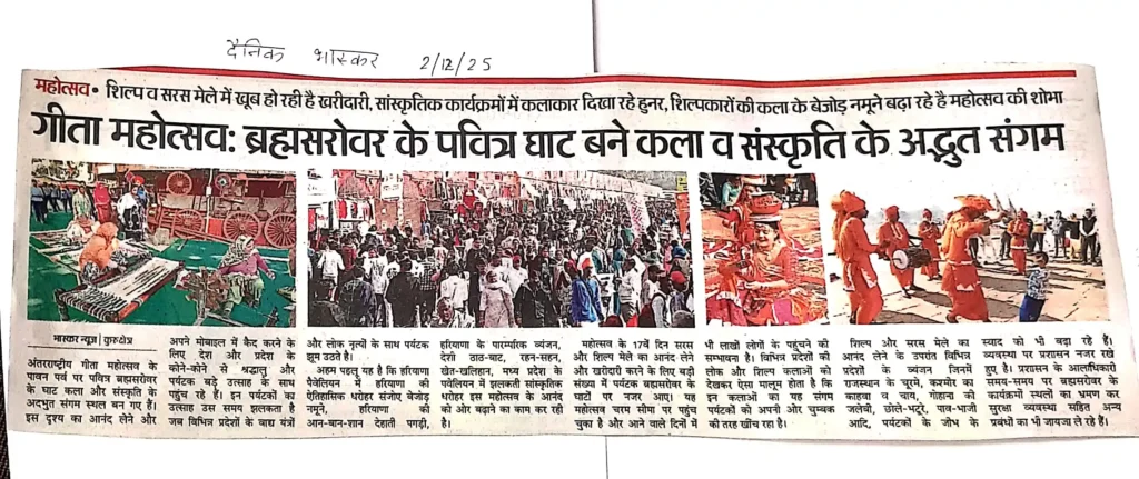 Print Media IGM 2025गीता महोत्सवः ब्रह्मसरोवर के पवित्र घाट बने कला व संस्कृति के अद्भुत संगम administrator / December 8, 2025
