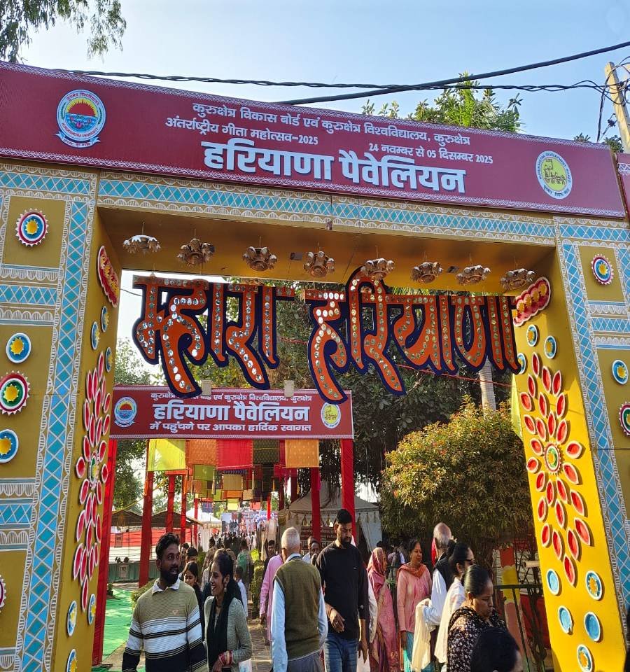 हरियाणा पेवेलियन में रंगों, संस्कृति और परंपराओं का अनोखा संगम! अंतरराष्ट्रीय गीता महोत्सव में हरियाणा की मिट्टी की खुशबू, लोककला