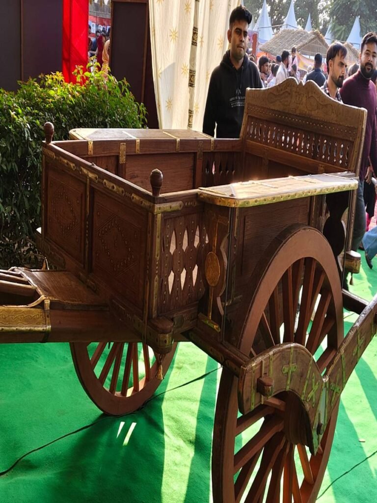 लकड़ी की खूबसूरत नक्काशी और देहाती कारीगरी से सजी यह बैलगाड़ी गाँवों के उन सुनहरे दिनों की याद दिलाती है […]