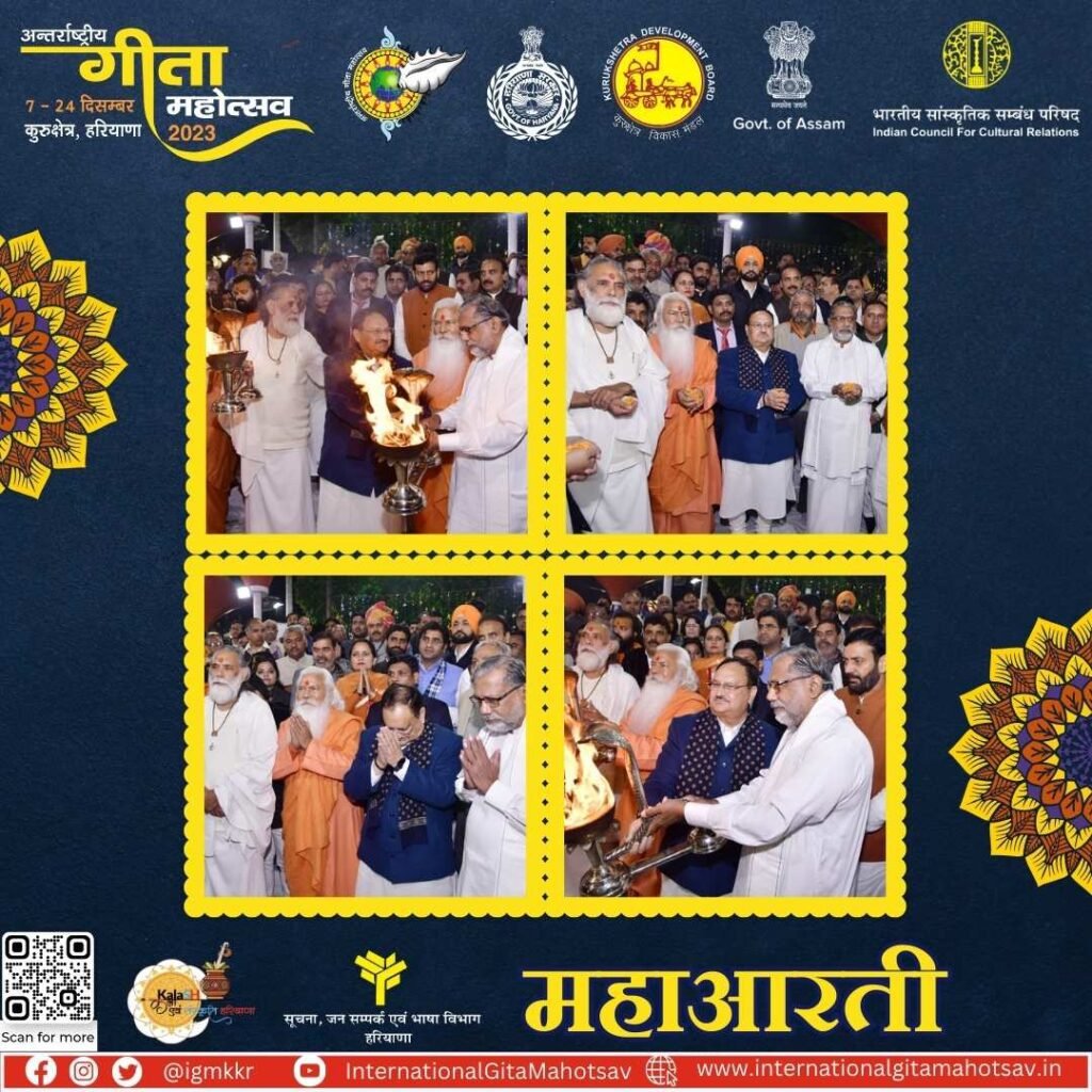 महाआरती में श्रीलंका के पर्यटन मंत्री विदुरा विक्रमनायके, गीता मनीषी स्वामी ज्ञानानंद, भाजपा के प्रदेशाध्यक्ष एवं सांसद नायब सिंह सैनी,