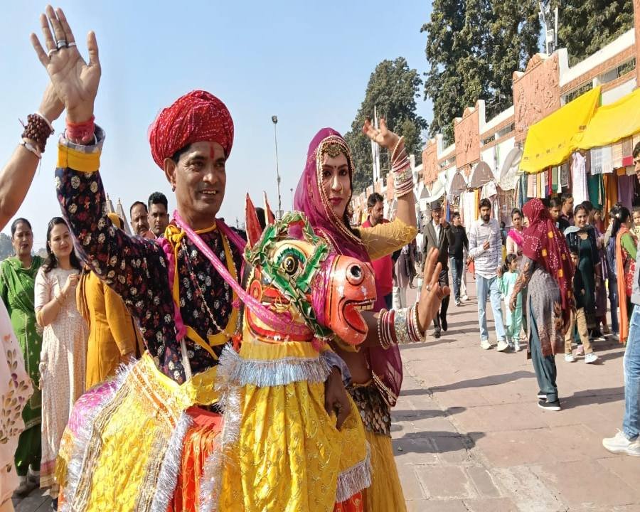 धर्मक्षेत्र कुरुक्षेत्र के पावन ब्रह्मसरोवर पर चल रहे अंतर्राष्ट्रीय गीता महोत्सव में राजस्थान से आए कलाकारों द्वारा प्रस्तुत कूची-गुड़ी नृत्य