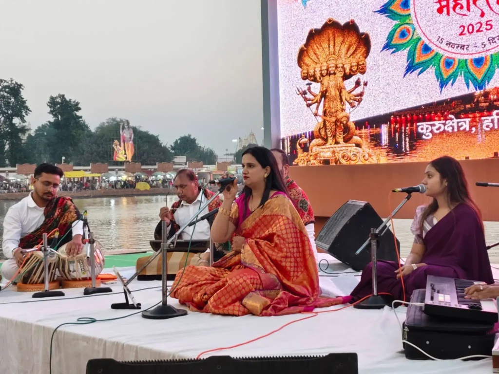 अंतर्राष्ट्रीय गीता महोत्सव में आरती स्थल पर हो रही भजन संध्या का दिव्य आनंद लीजिए। शांति, भक्ति और अध्यात्म से