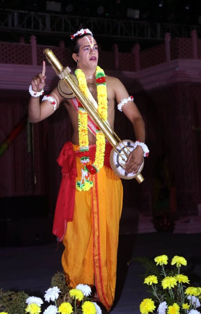 अंतर्राष्ट्रीय गीता महोत्सव में मंच पर कलाकार की जीवंत अभिव्यक्ति ने भक्ति, संगीत और भाव का अद्भुत संगम प्रस्तुत किया।