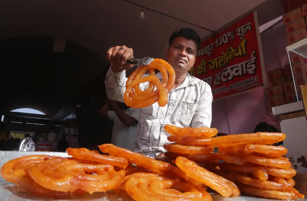 महोत्सव का असली मीठा स्वाद — ताज़ी, खस्ता और गरमा-गरम जलेबियाँ! अंतर्राष्ट्रीय गीता महोत्सव में स्वाद भी है… और आनंद
