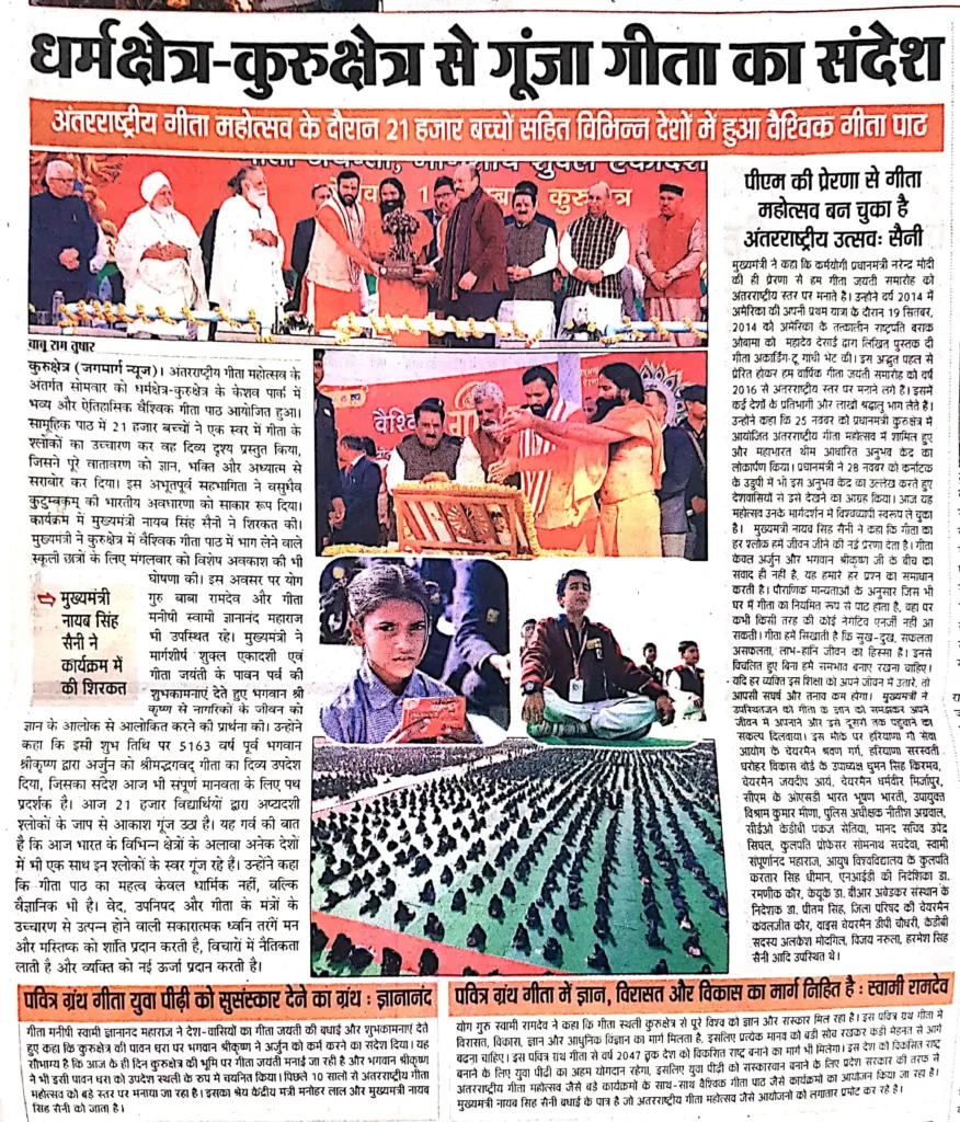 Print Media IGM 2025कुरुक्षेत्र से गूंजा गीता का संदेश 58 देशों में पहुंचा administrator / December 6, 2025