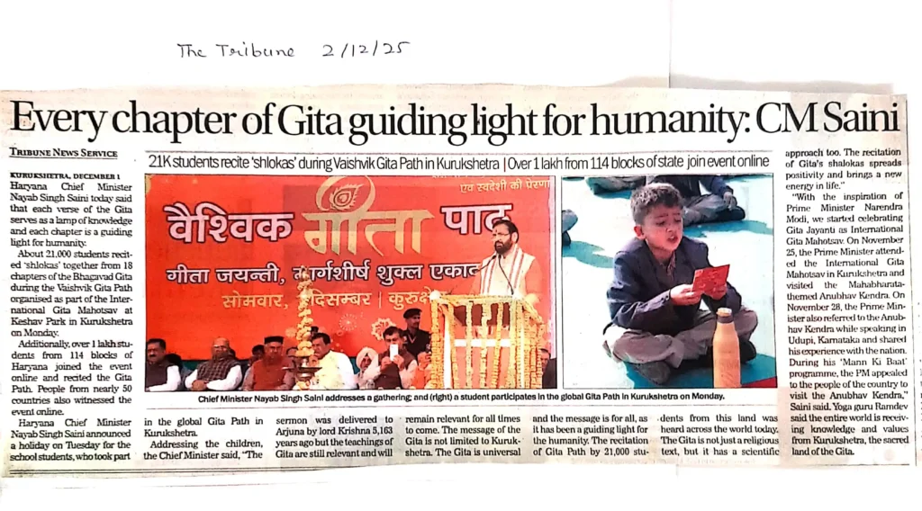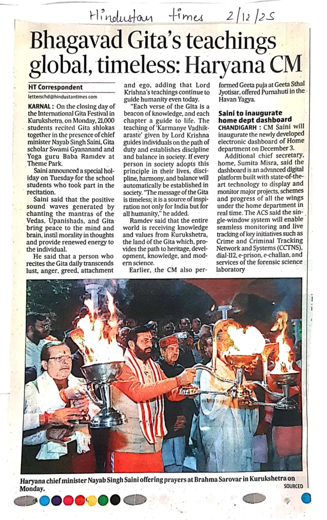 Print Media IGM 2025Bhagavad Gita’s teachings global, timeless: Haryana CM administrator / December 6, 2025