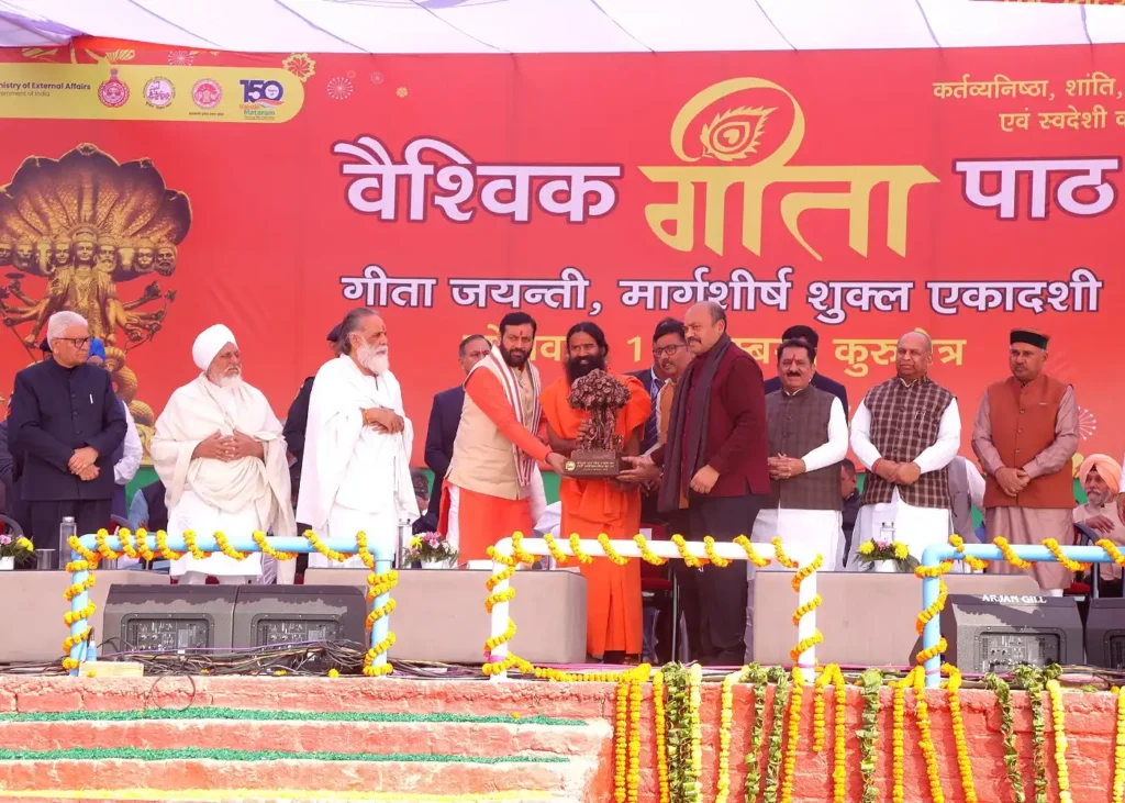 अंतर्राष्ट्रीय गीता महोत्सव–2025 के अंतर्गत धर्मक्षेत्र–कुरुक्षेत्र स्थित केशव पार्क में आयोजित वैश्विक गीता पाठ अपने आप में एक अद्वितीय और