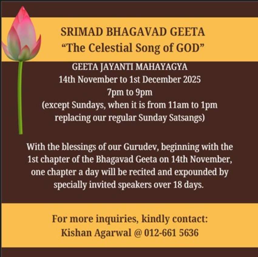 Geeta Ashram, Petaling Jaya, Malaysia celebrated the International Gita Mahotsav with devotion and cultural harmony, in partnership with the High Commission of India in Kuala Lumpur and the Netaji Subhas Chandra Bose Indian Cultural Centre.