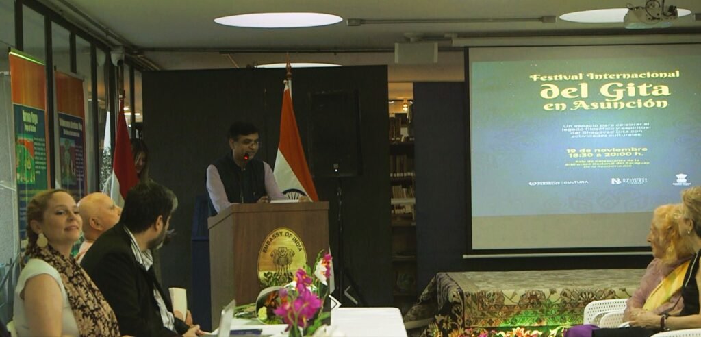 The Embassy of India in Asunción, in collaboration with the National Secretariat of Culture and the National Library of Paraguay, successfully celebrated the International Gita Festival in Asunción on 19 November 2025 at the National Library premises.
