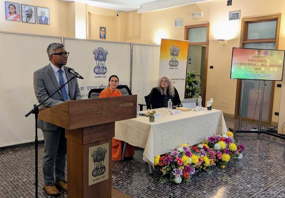 The Consulate General of India in Milan, in collaboration with the Italian Hindu Union, organized a special celebration of the International Gita Mahotsav 2025 on 18 November 2025. The event brought together scholars, community members, and cultural representatives to honor the universal teachings of the Bhagavad Gita.