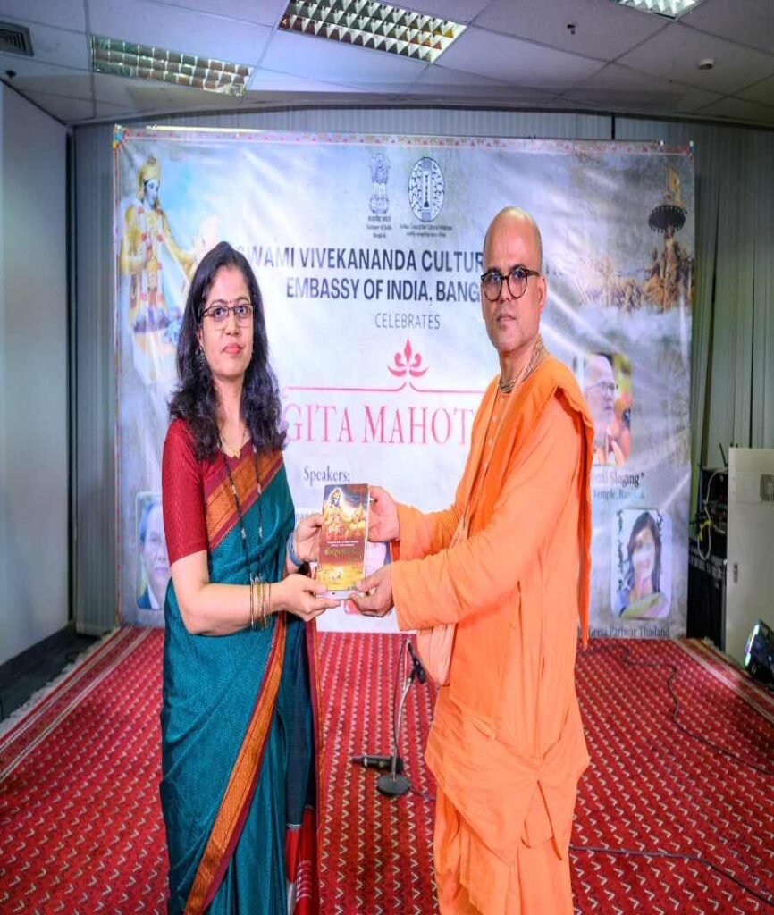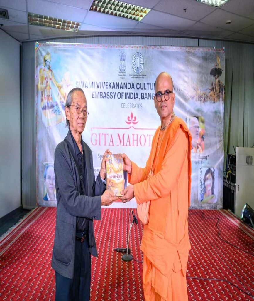 A soulful recitation of Chapters 12 and 15 of the Bhagavad Gita was delivered with deep devotion and clarity, filling the hall with spiritual energy. The devotional Kirtan by ISKCON Bangkok enthralled the audience, as devotees from the ISKCON Temple presented melodious and spiritually uplifting performances. The event created an atmosphere of peace, bhakti, and divine harmony, leaving everyone inspired and spiritually refreshed.