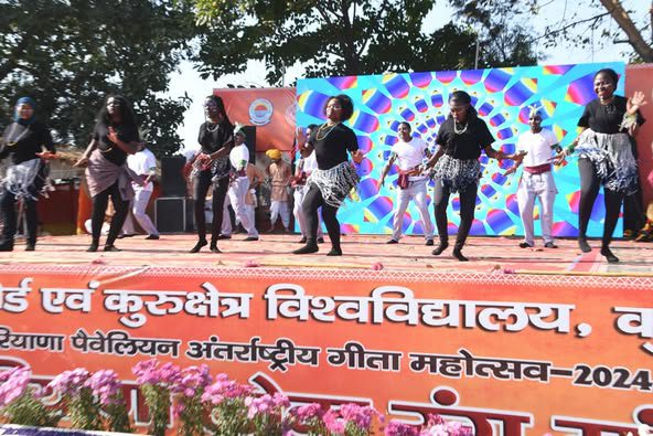 At the International Gita Mahotsav 2024, artists from Tanzania have beautifully presented their cultural expressions at the Haryana Pavilion. These talented artists brought their vibrant Tanzanian art to the heart of Kurukshetra, offering a mesmerizing glimpse into the rich cultural tapestry of East Africa.
